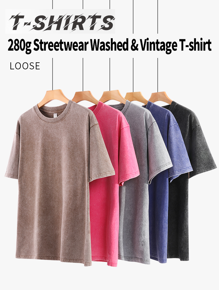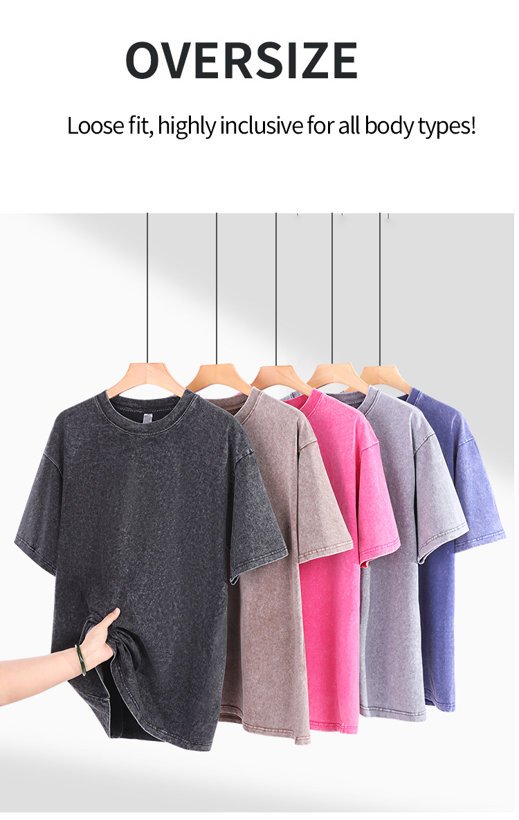 #SN8020~280GSM 100% Cotton Vintage Washed Distressed Oversized Drop Shoulder T - shirts